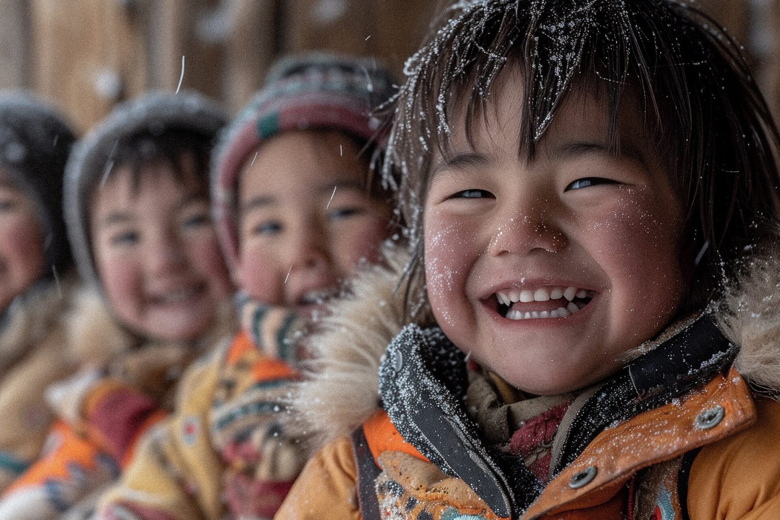 inuit kids laughing and playing, wide angle, photojournalism, docuemntary photography, cinematic still --ar 6:4 --stylize 750 --v 6 Job ID: 9d3c06f0-09b3-49c4-a5b4-0c886b240b93